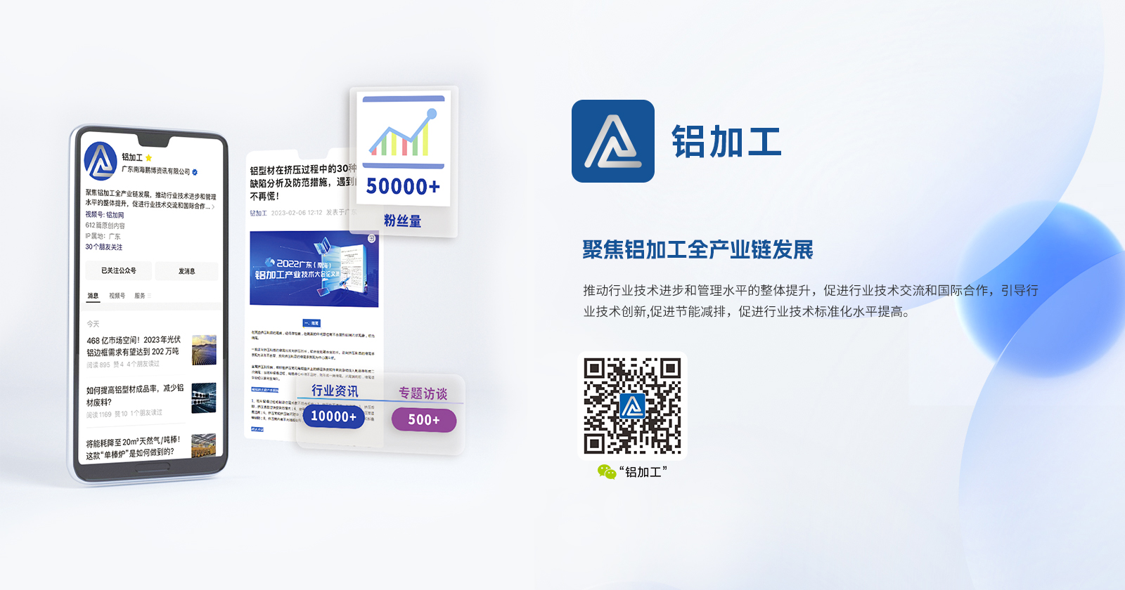鋁加網(www.albiz.cn)是聞名鋁加工行業的垂直門戶網站,云聚鋁業新生態,構建鋁業新場景,以albiz.cn 網站為核心,以移動云端、鋁加工微信、鋁加網視頻號、《鋁型材??泛汀朵X世界》雜志為載體,成為了鋁加工行業資訊和精準傳播的首選傳媒。鋁加網,采集和發布全行業信息資訊,提供線上展覽、在線直播、短視頻、品牌策劃、品牌運營、品牌傳播等全方位的專業服務。